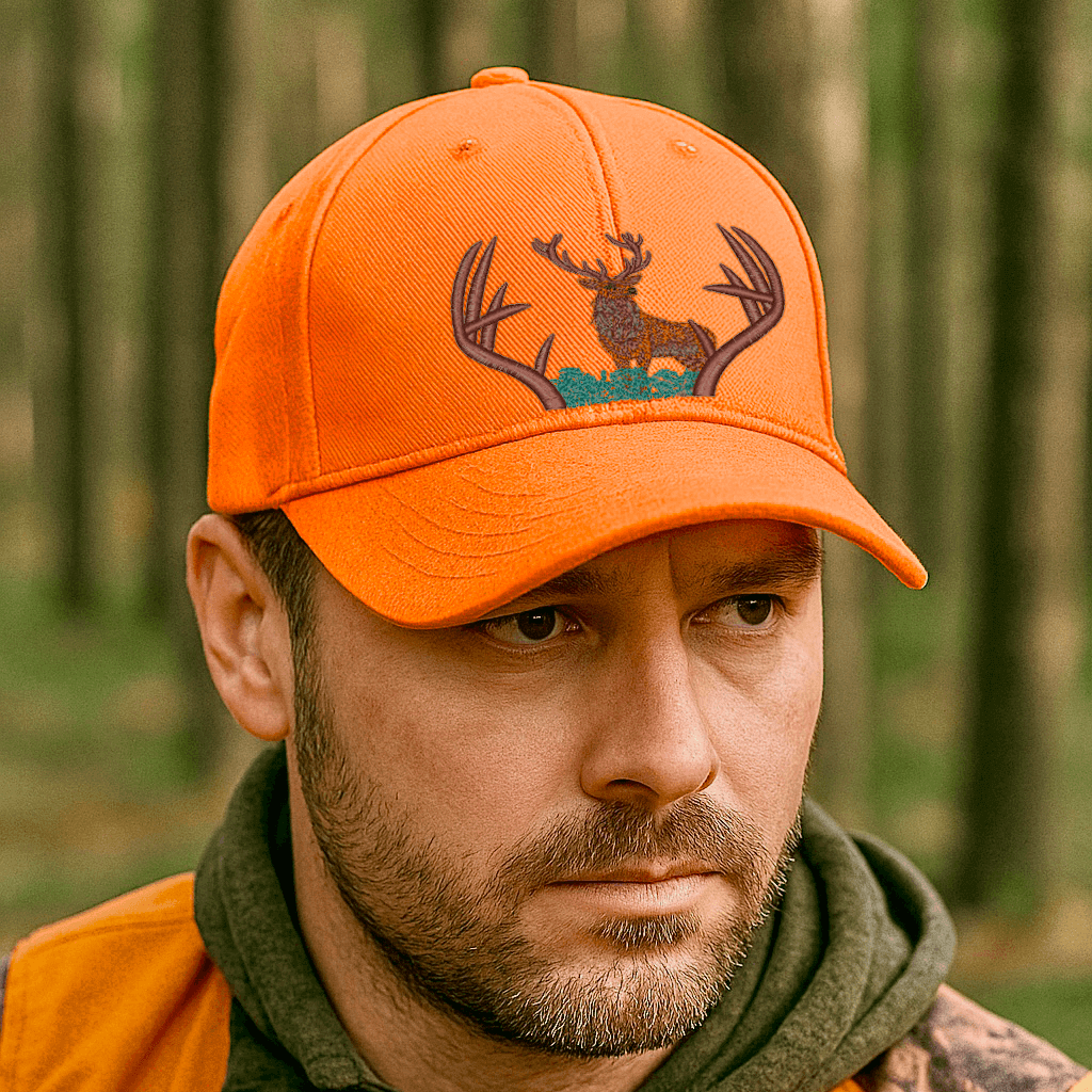 Denne orange cap med en broderet hjort er perfekt til fx jagt. Hjorte kan ikke se den klare orange farve, men dine jagtkammerater kan, hvilket gør den både sikker og stilfuld i felten. Ideel til jægere, der ønsker synlighed uden at skræmme byttet væk.